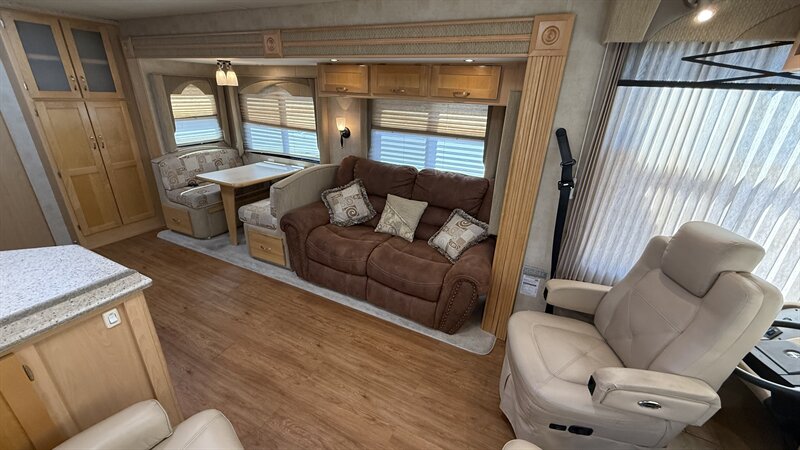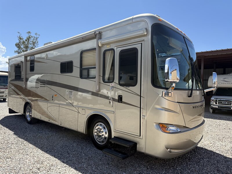 The 2006 Newmar Ventana 3330 is a well-crafted diesel pusher built for travelers who want premium construction in a more compact package. Measuring just 33 feet 10 inches in length, it’s easy to drive while still offering Newmar’s legendary build quality and luxury finishes. Powered by a Cummins diesel engine on a Freightliner chassis and equipped with two slide-outs, this coach features a spacious layout with solid wood cabinetry, a well-appointed kitchen, and a private rear bedroom. Whether you're a weekend warrior or a full-timer, the Ventana 3330 delivers upscale comfort in a manageable size. With a towing capacity of 10,000 lbs, it's ideal for bringing along your vehicle, trailer, or toys with confidence.
