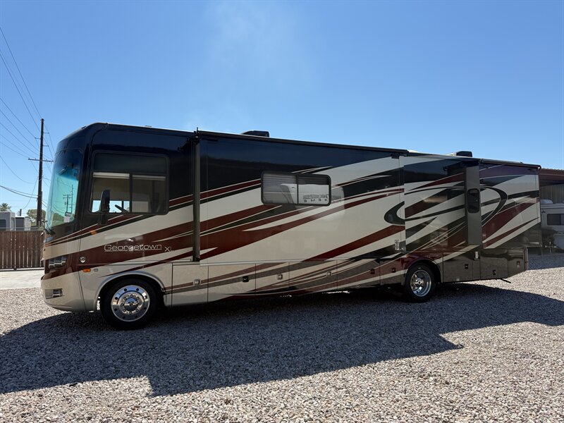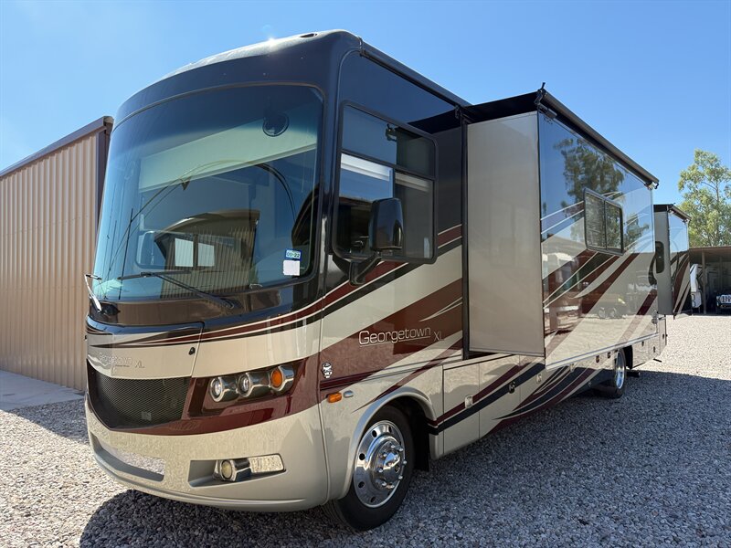 Shop this 2012 Forest River Georgetown 378TS on a Ford V10 chassis in Tucson, Arizona. Spacious triple-slide Class A motorhome with full kitchen, private bedroom, and plenty of storage. Perfect for family RV travel across Arizona and beyond.