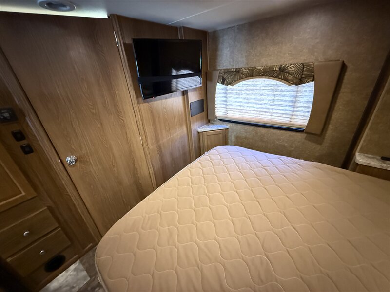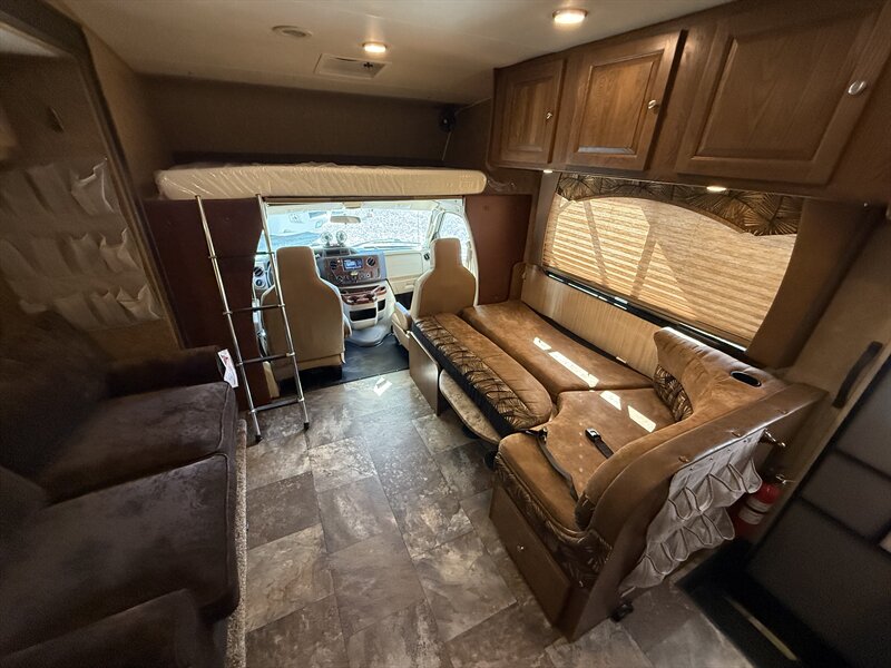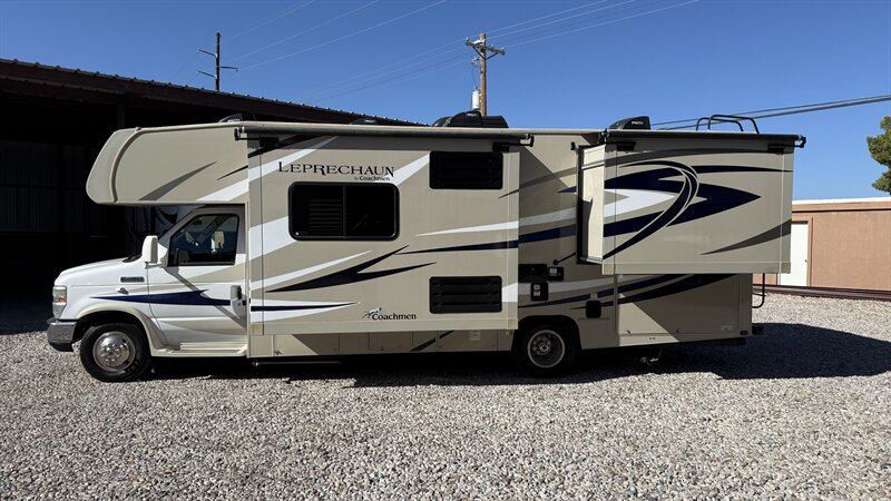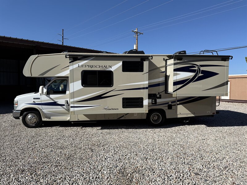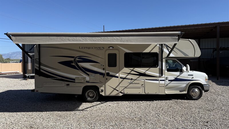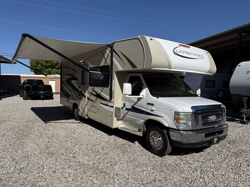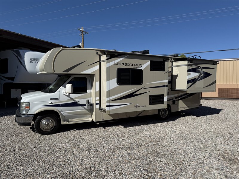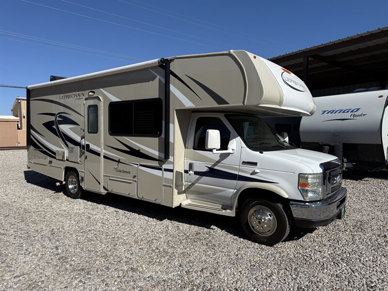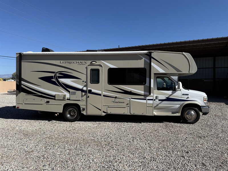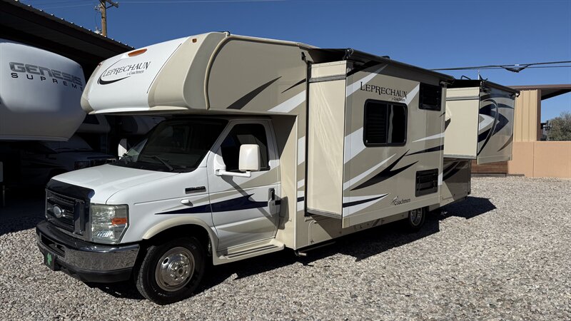 Explore this 2015 Coachmen Leprechaun 260DS (2016 floorplan) Class C motorhome in Tucson, Arizona. Built on the Ford E-450 chassis with dual slides, U-shaped dinette, walk-around queen bed, and abundant storage. A perfect used RV for couples or families.